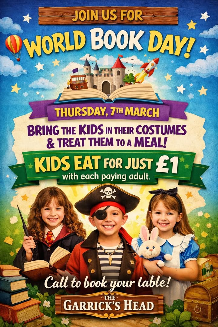 Bring the kids in their favourite dress-up costumes and treat them to a meal at The Garrick’s Head!
