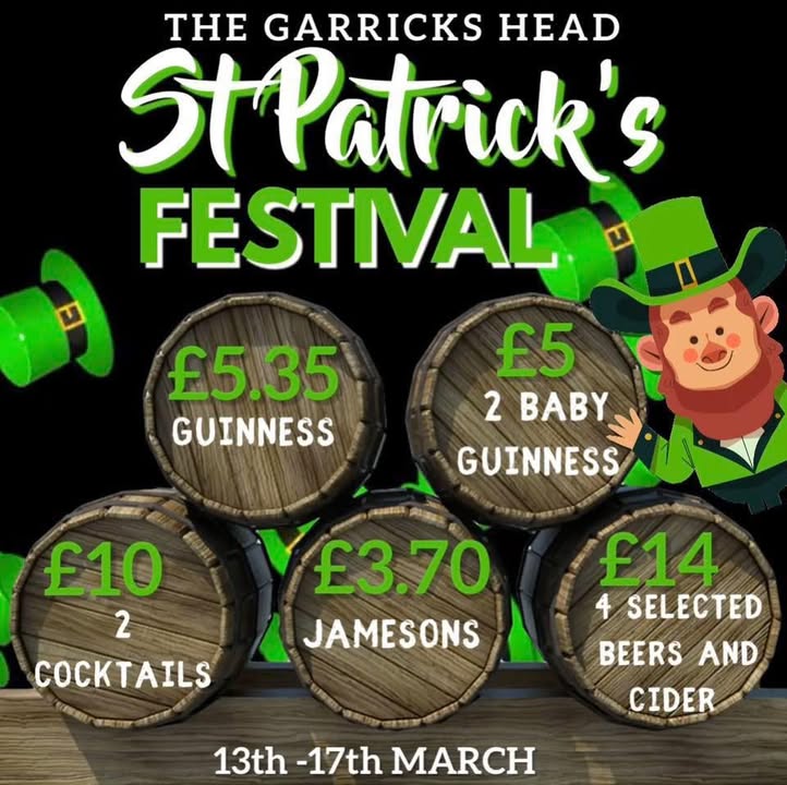 🍀 PADDY’S WEEK EXTRAVAGANZA AT THE GARRICK’S HEAD! 🍀